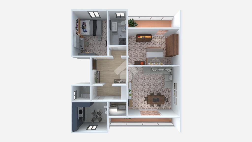 L’immobile presenta una distribuzione degli spazi funzionale e ben equilibrata: ingresso, soggiorno luminoso con accesso al balcone, cucina separata, due bagni finestrati di cui uno di servizio e uno principale con vasca e due camere da letto generose, una delle quali matrimoniale con balcone.